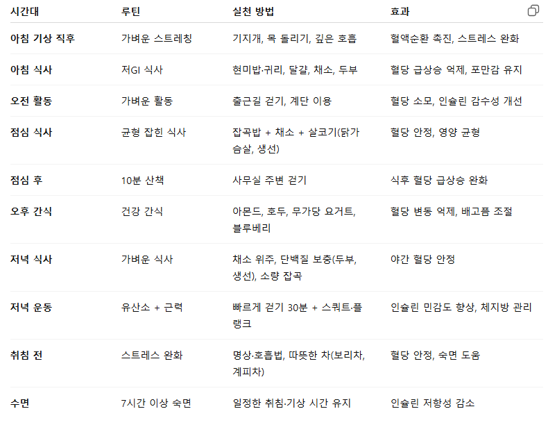 혈당 관리 하루 생활 루티표