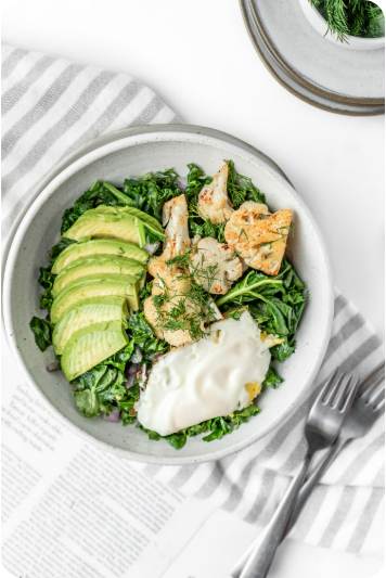 연어, 닭가슴살, 달걀과 함께 곁들이면 고소한 맛이 조화를 이룬다.
